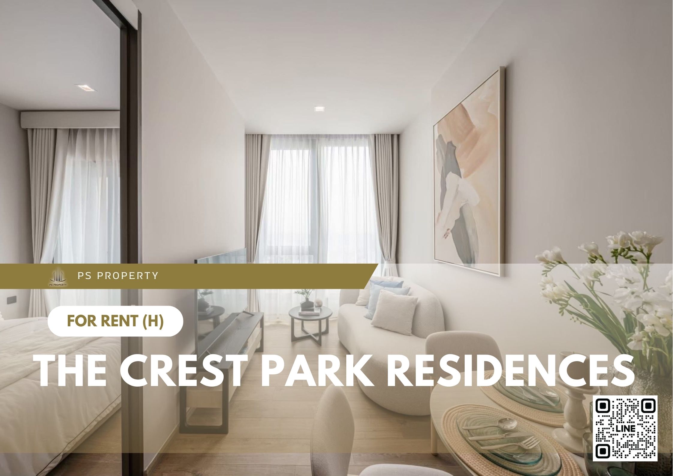 PS102576 – Condo Near MRT Phahonyothin Station For Rent , One bedroom unit at The Crest Park Residences