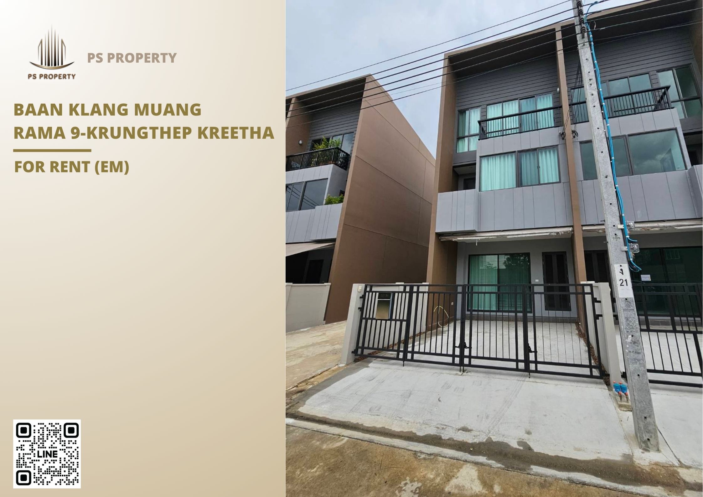 PS101006 – House Near MRT Phra Ram 9 Station For Rent , at Baan Klang Muang Rama 9-Krungthep Kreetha